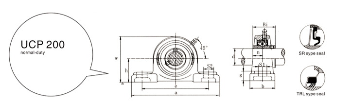 UCP 系列外球面带座轴承是轴承组件中最具代表性的结构形式。其 P 型轴承座采用平底实心设计,该系列包含UCP200与UCP300两个子系列。UCP300 系列的承载能力优于 UCP200 系列,这是因为轴承座安装部位的根部增设了加强筋,形成可全方位适配的高强度结构。